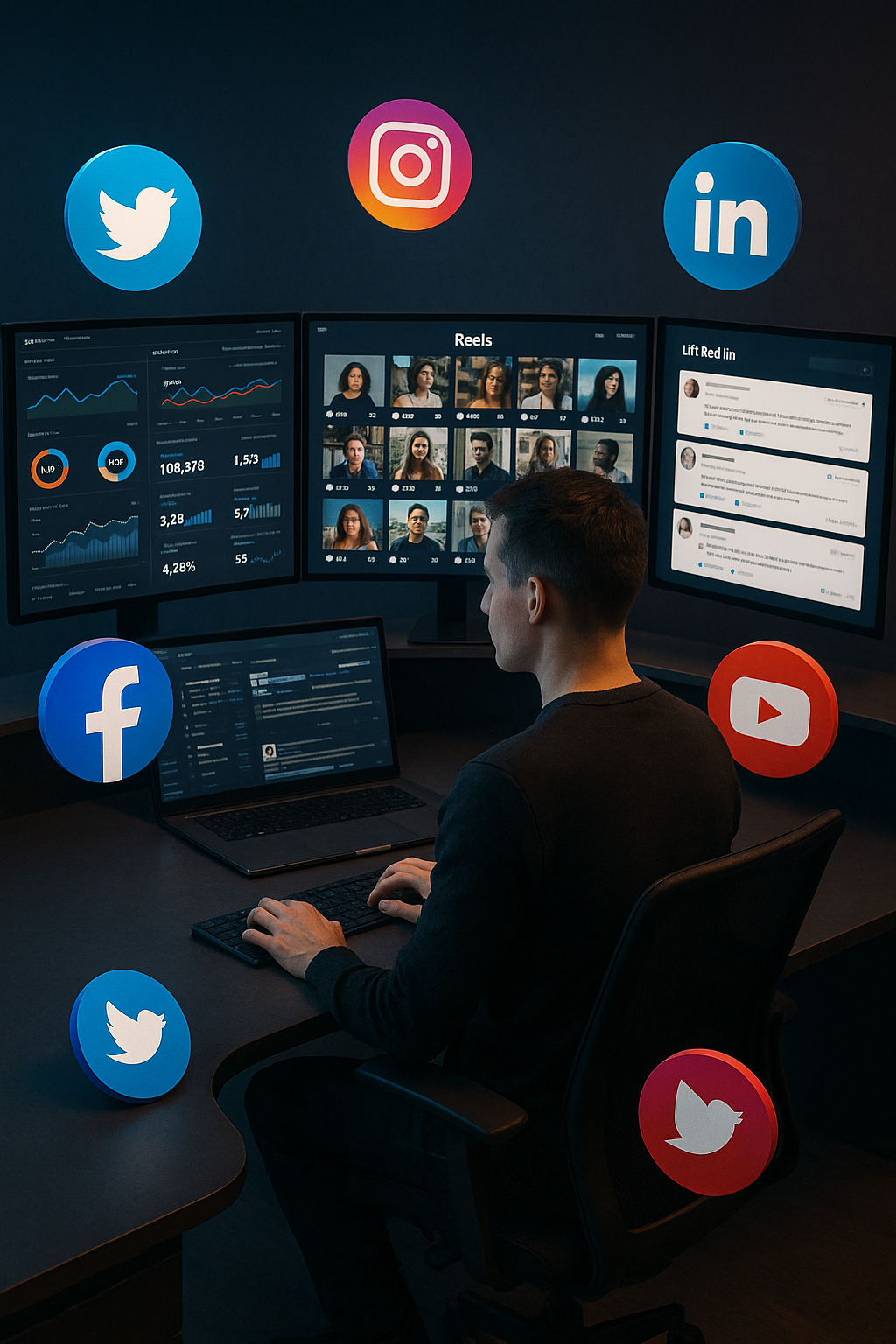 We provide comprehensive social media management across all platforms including LinkedIn, Instagram, Facebook, Twitter, and TikTok. Our LinkedIn specialists particularly excel at growing your professional network through strategic, authentic content.
